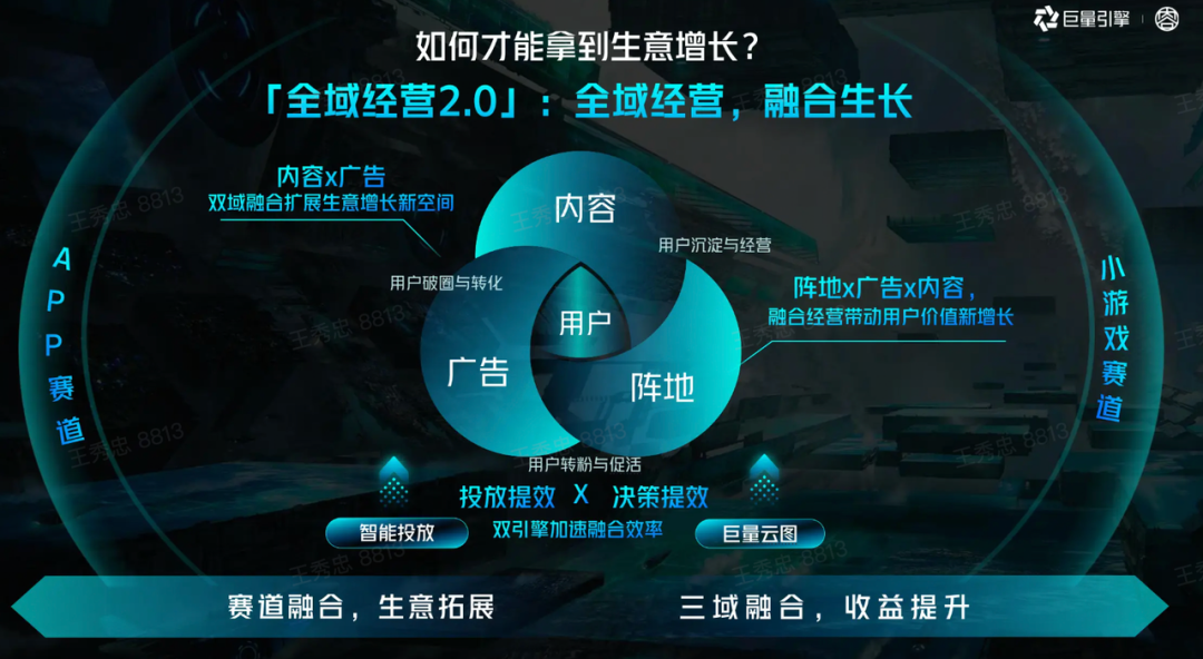 所谓“三域融合”是指“内容x广告x阵地”三域更深的融合,进一步提升用户规模与LTV。