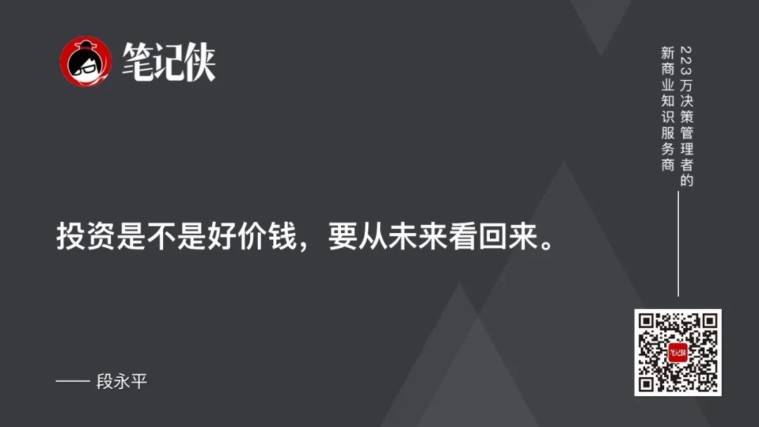 有“利润之上”的追求则更容易看到事物的本质,就会更容易坚持做对的事情或者说更不容易做错的事情,就不大会受到短期的诱惑而偏离大方向。