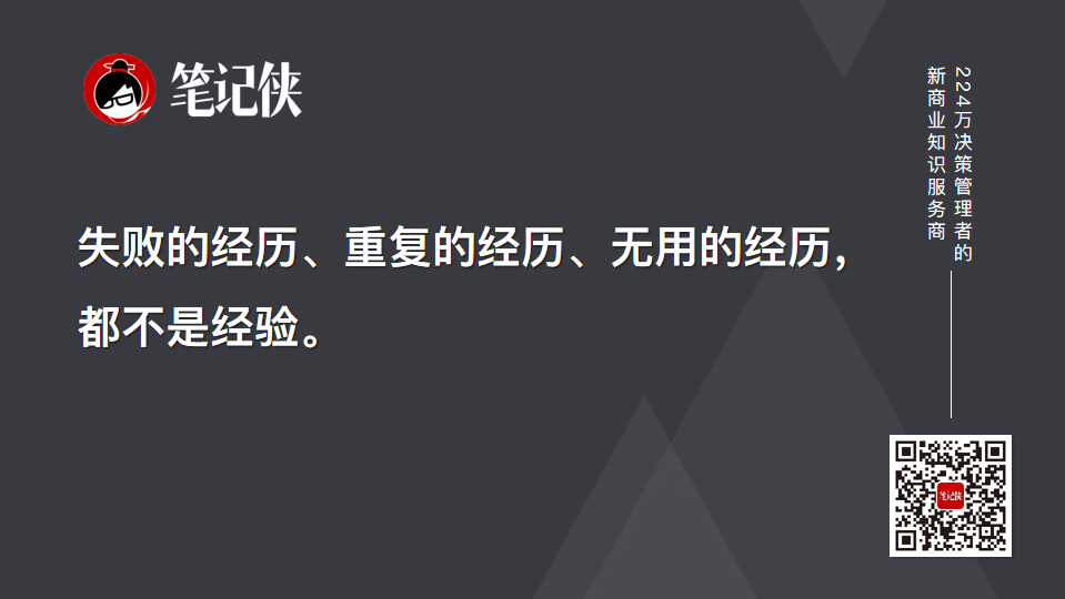 经历和经验的另一个巨大差别在于,经历是可以被动获得的,一个人不用动脑子,只要在社会上活着,就能产生经历,但经验有时需要主动获取。