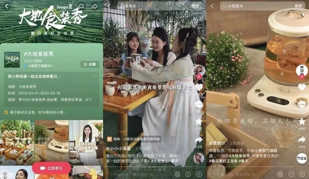 第二季是今年三月,在诸多影视剧的影响之下,“中式美学炫饭”成为大势。小熊对春色的诗意呈现,又让品牌获得超5亿话题阅读量和超三千万的视频播放量。