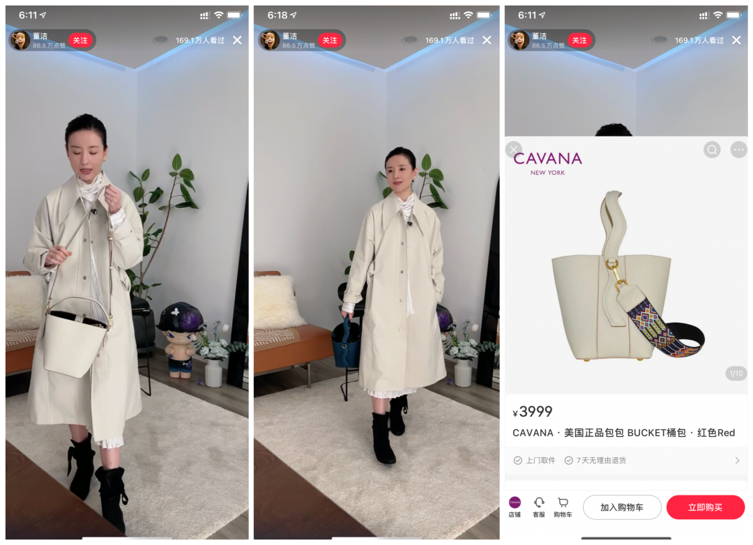 从产品的本质上来评价,可以说和其它的直播间没什么区别,董洁说:这款包包在你的柜子里,永远会是一个好的包包的存在,高单价产品,用户的需求远远大过于产品卖点,他们会因为我缺少一个这种类型的包包,而进行品类选择。3999的价格定位中高端用户,董洁直播间的51个商品中,带动了中高端品类的发展,同时也开启了直播的一种新的潮流。