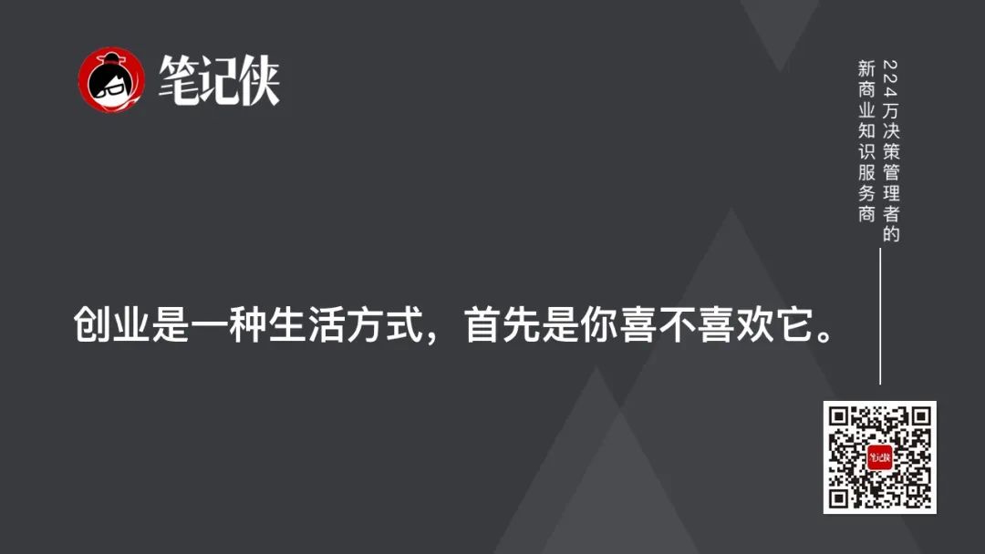 2.创业是一种生活方式,首先是你喜不喜欢它。不是每个人都要成为马云,不是每个人都要做成BAT这样的大公司。