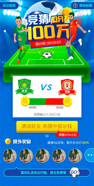 并在产品设计过程中把该动机充分放大,所以就有了动态的“投”按钮,两队PK的竞争图注、竞争的背景图、激情的开场音乐、“国安牛逼,踢谁谁歇逼”、“鲁能无所不能”这样的设计元素及文案。