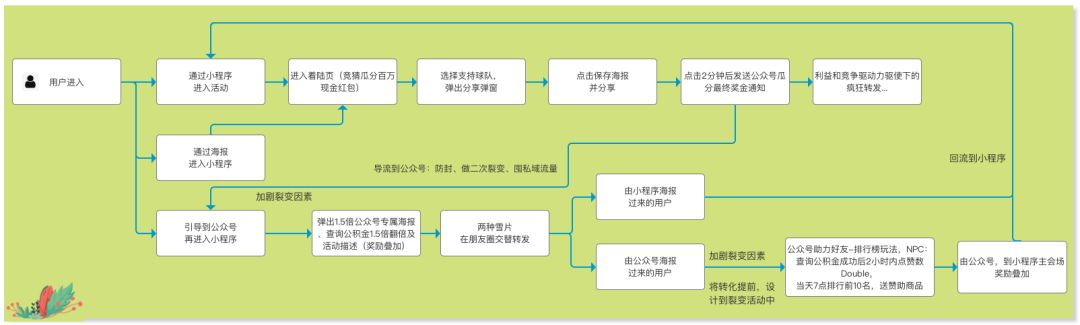 新引进来的用户完成公众号活动在转到小程序主会场,这者相互咬合,越转越快,最后产生的效果就是大量的流量授权用户及公众号粉丝数。