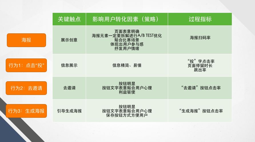 通过之前在研究活动可行性的时候,对过程指标海报扫码数、海报保存数所做的策略进行筛选,把重点放在QQ群、微信群;朋友圈;球迷社区(懂球帝...)三个主战场