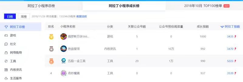 ③登阿拉丁小程序成长榜日榜top3,登阿拉丁小程序工具榜top30 ;