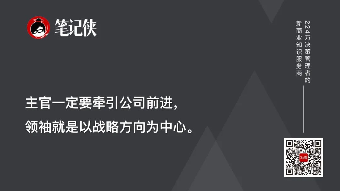 主官一定要牵引公司前进,领袖就是以战略方向为中心。如果没有战略思维,就不是主官,他可以退成主管,抓事务性的日常工作。