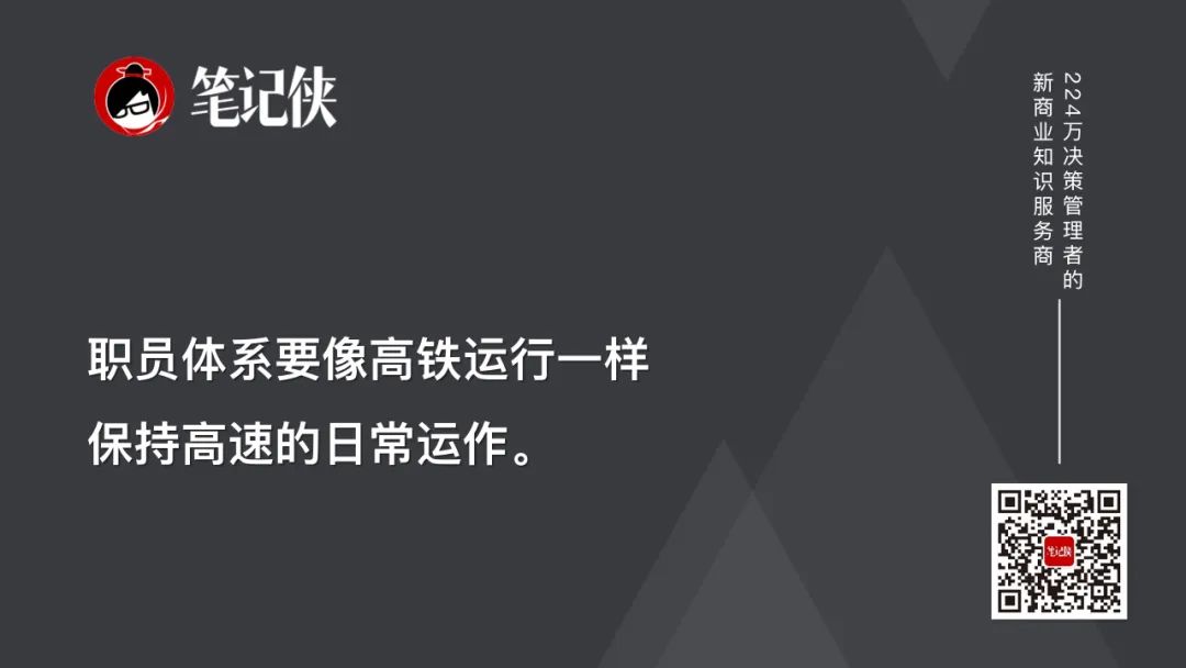 职员体系要像高铁运行一样保持高速的日常运作,京广高铁途径几千个审查点才能到广州,但都是无接触的监管,只要核对几个命令是符合的,就按钮操作。