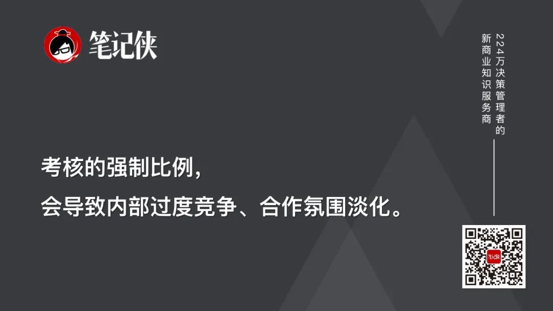 第一,考核的绝对化,就是僵化;考核的强制比例,会导致内部过度竞争、合作氛围淡化。