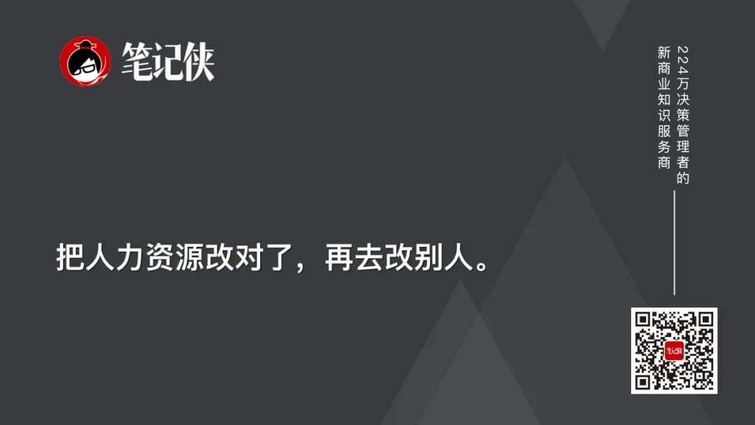 把人力资源改对了,再去改别人。但要谋定思动、逐步调整,避免因人员变动而导致过去良好的做法、经验和模板的丢失。