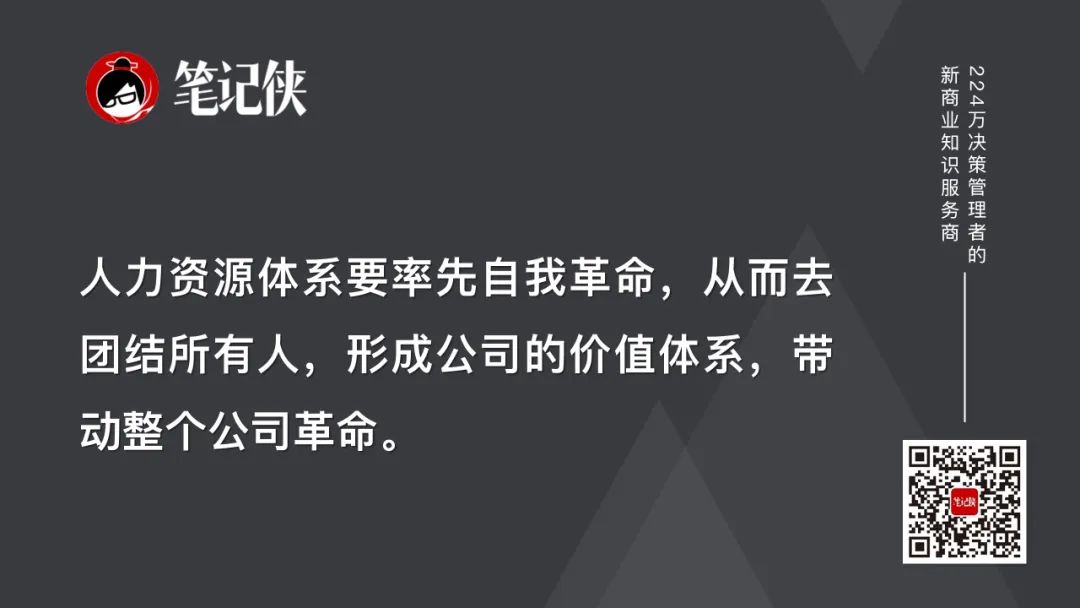 2.人力资源体系要率先自我革命,从而去团结所有人,形成公司的价值体系,带动整个公司革命。