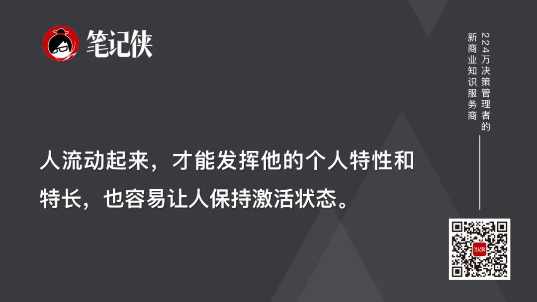 我们要允许自由流动,人流动起来,才能发挥他的个人特性和特长,也容易让人保持激活状态。