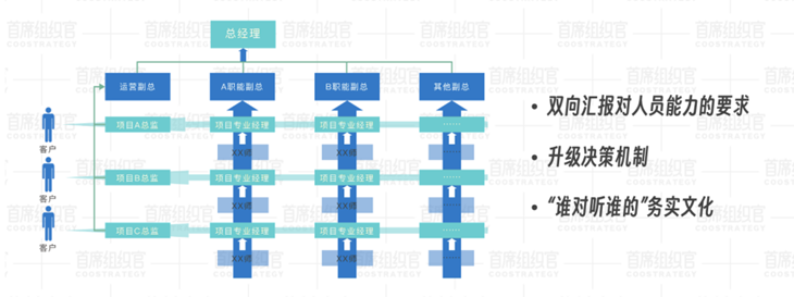 需要双向汇报的人,比直线架构中的人要有更强的沟通协调能力;
