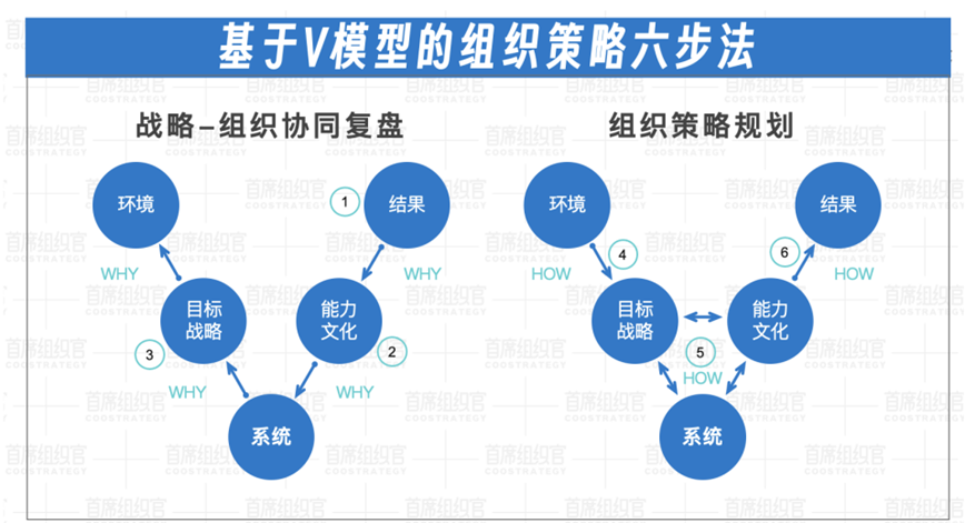 V模型不仅是认知模型,还是工作方法论。V模型六步法是进行组织策略规划的思维框架/方法论。