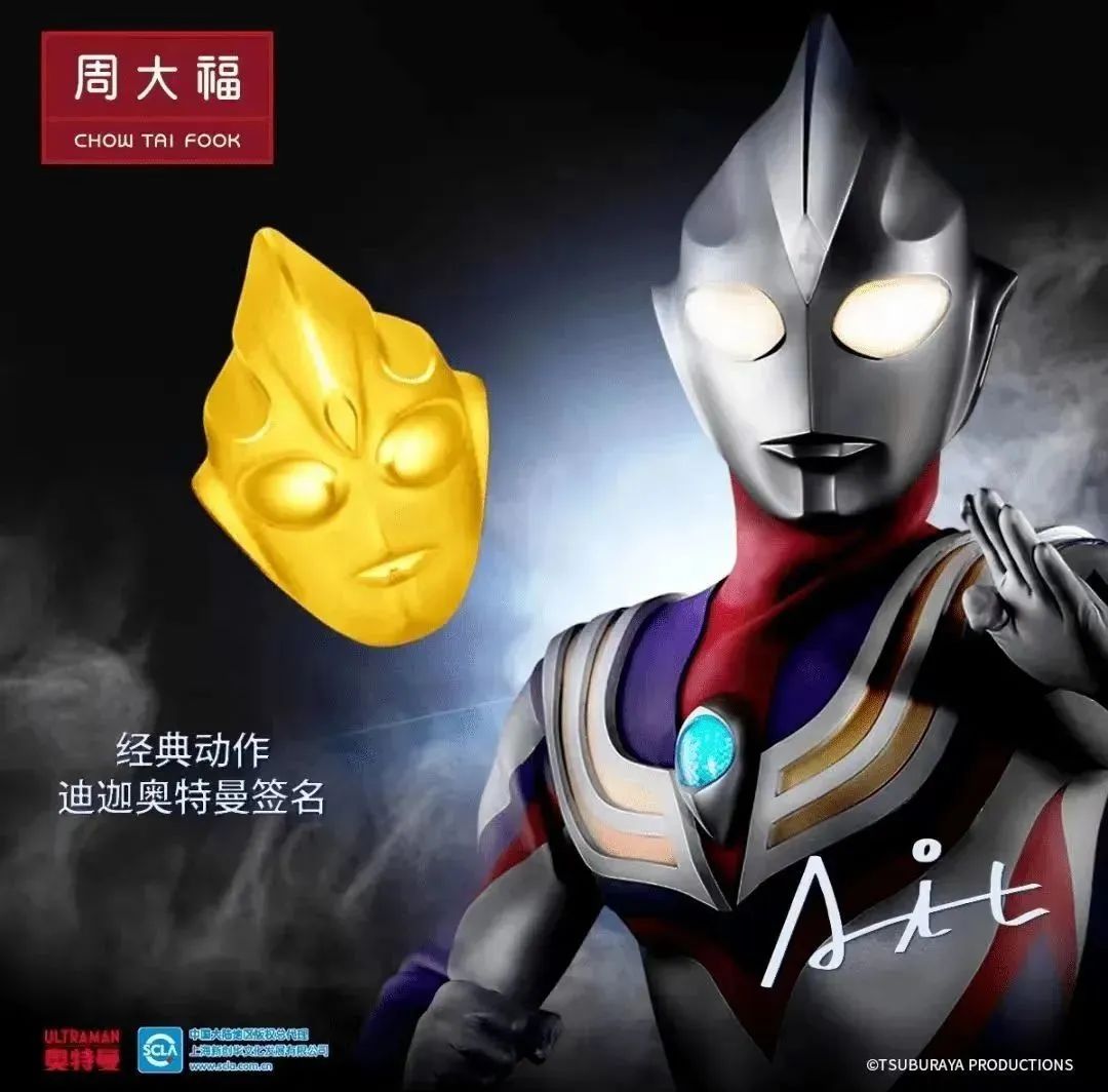 同时,周大福联名奥特曼的产品设计,保留其外在形象特质,让联名产品以奥特曼的形象示人,也算是把奥特曼的精髓给刻画得惟妙惟肖,二者的联名能够瞬间点燃消费者。