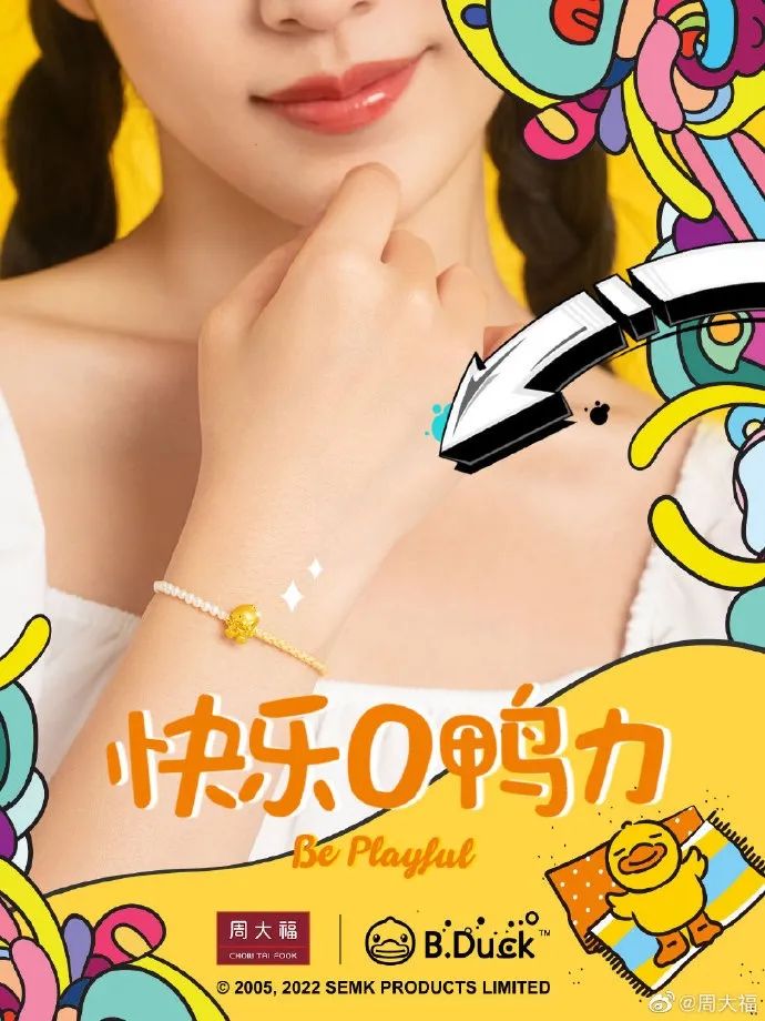 于是,周大福便将“万物皆可联名”做到极致。致力于与IP合作推陈出新实现合作共赢,以传统珠宝工艺制造为舵身,以爆款热门IP形象为船帆,把商品的使用价值和情感价值巧妙结合,借助创新联名这条赛道快速与年轻消费者建立链接。