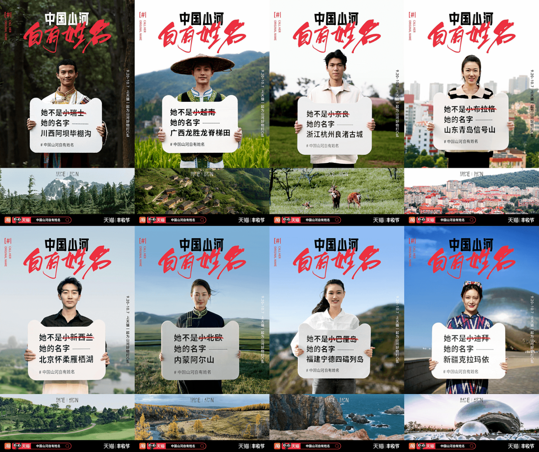 比如,我们聊到了一个天猫丰收节的案例。这个案例打出了“中国山河自有姓名”这个 SLOGAN。这个案例背后的洞察是,国内的很多景区,被冠以小瑞士、小奈良、小摩洛哥这样的名字,但我们的景区不应该是国外小 xx,而是有自己的姓名。这个活动在全网都引发了非常大的讨论。