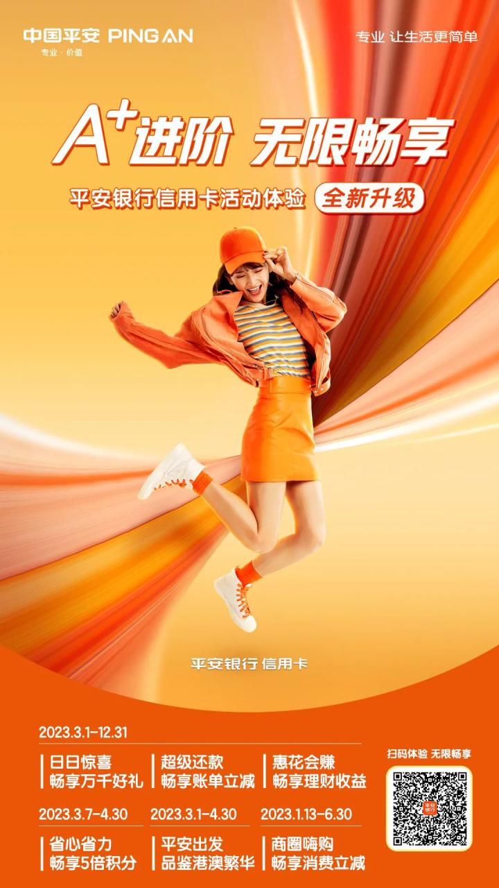 例如,今年1月初,平安银行信用卡经典系列产品开启了“A+进阶”焕新升级,重点以平安品牌辅助图形“A”为核心元素,重塑了统一、简洁的卡面形象,更以A象征的“卓越、领先”寓意和向上的姿态,传递了品牌专业进取、与时俱进、一往无前的精神态度,在放开后的社会背景下激励人们勇往直前,与时代和大众情绪共鸣。此次活动体验升级,是“A+进阶”系列的接力动作,一口气带来主题活动、境外、积分、商户、还款、理财6大类场景的活动升级,以丰富的优惠回馈,“无限畅享”的活动体验,助力消费复苏,助力用户在新的一年“畅享”美好生活,同时也是品牌步履不停、创新不止精气神的延续。