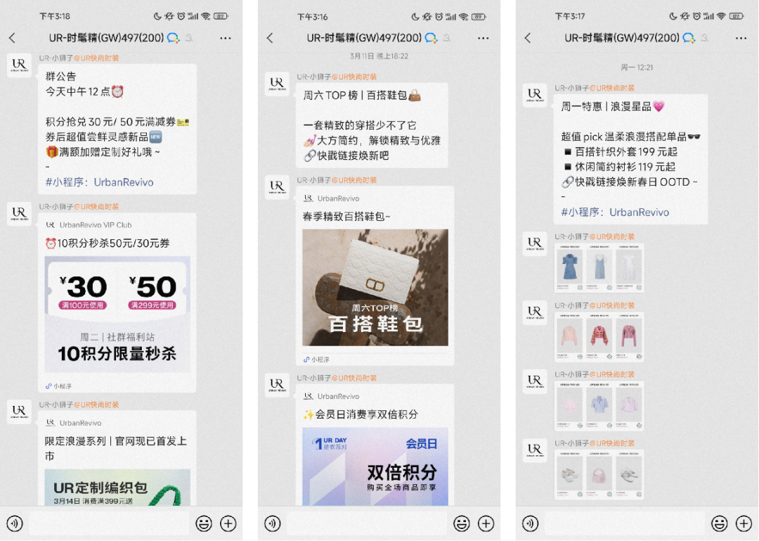 社群方面,UR通过定期发送各种福利活动,引导用户下单购买。