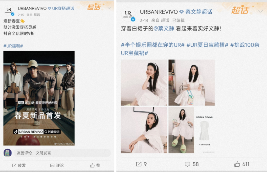 在微博上UR通过发布品牌最新活动,引导用户下单购买。