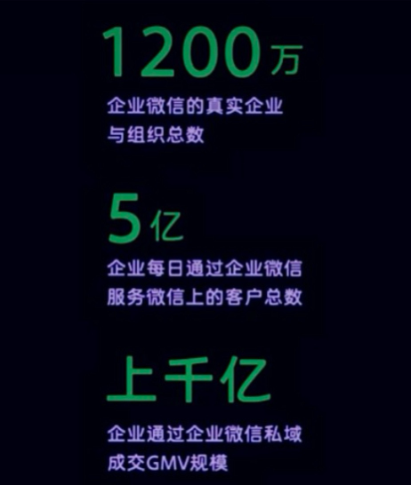 但他在现场没有就这一数据展开更详细的解读和分析,只是简单表示这是使用企业微信的公司,在上面成交的 GMV 总额。这一数据的计算方式,及是否被合并计算在小程序,或者视频号中,我们也暂时无从得知。
