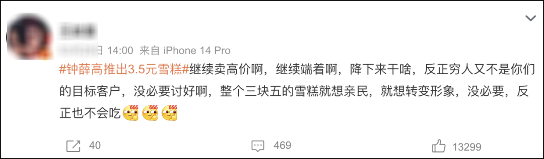 另外剩下的网友一如既往地看不惯钟薛高,评价说钟薛高就算把价格降下来了,劳资也不会买。