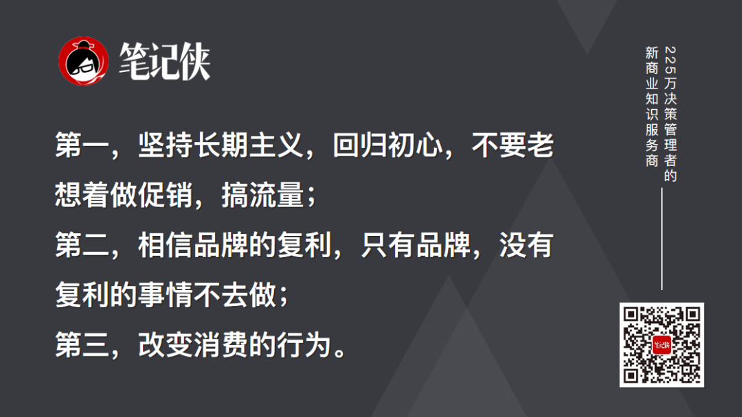 第三,聚焦核心资产,品牌就是核心资产,减少促销和流量依赖。