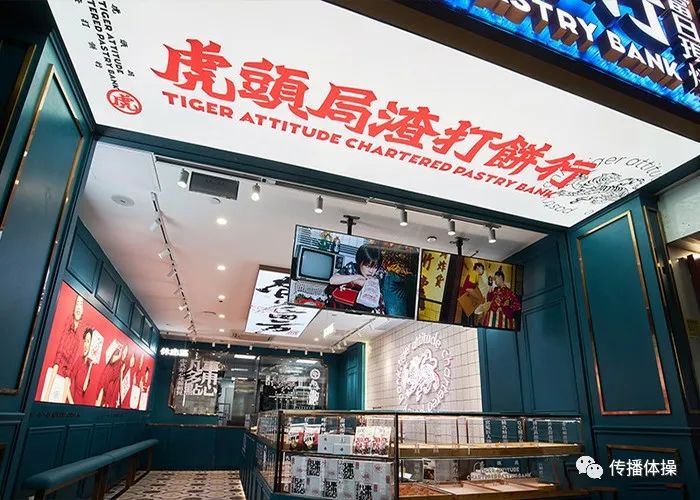 首先虎头局有一个颇具个性和记忆点的名字。虎头局全名为”虎头局·渣打饼行“,名字不仅有中西合璧的意味,也有港澳南洋风情。品牌vi、门店装修都具有经典的新国潮风格,即主要风格元素来自于香港招牌设计,同时加上更具现代感的设计和配色。