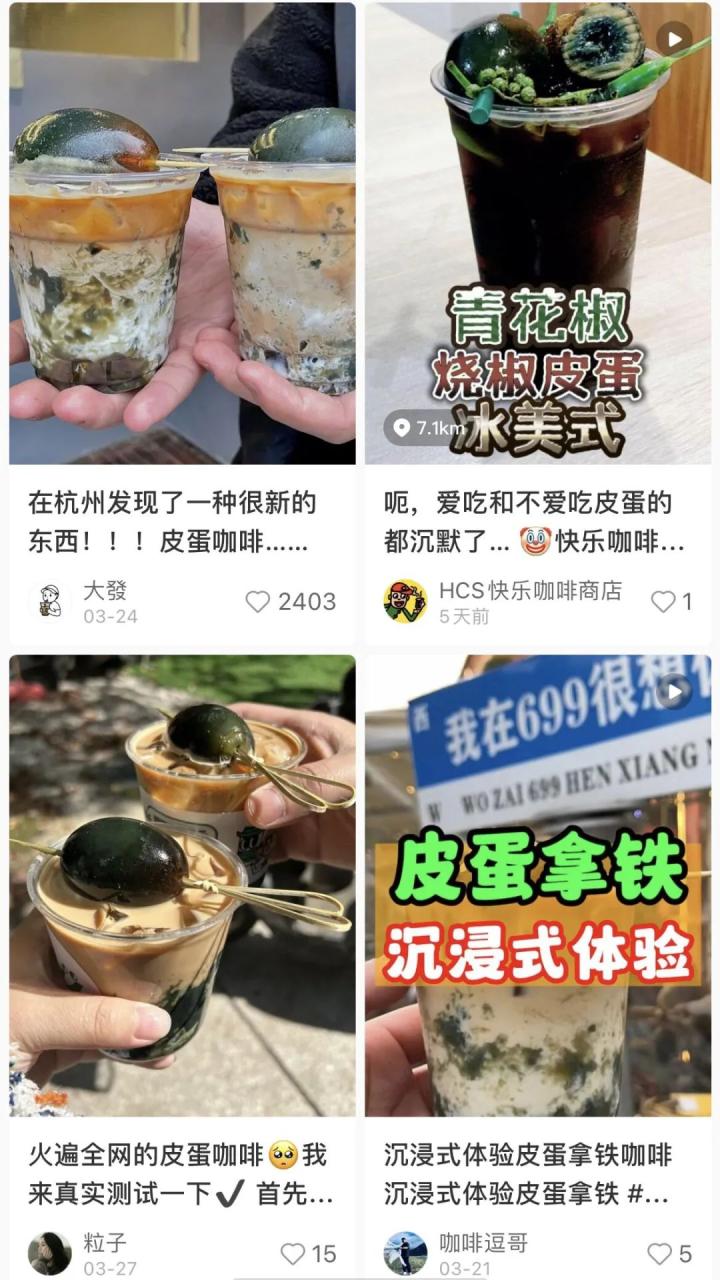 如果说茅台、太二酸菜鱼的咖啡口味还不够猎奇,那Seesaw Coffee将中国饮食文化中的皮蛋融入到了产品中,皮蛋咖啡的出现,可谓产品创新的天花板,让人眼前一亮。