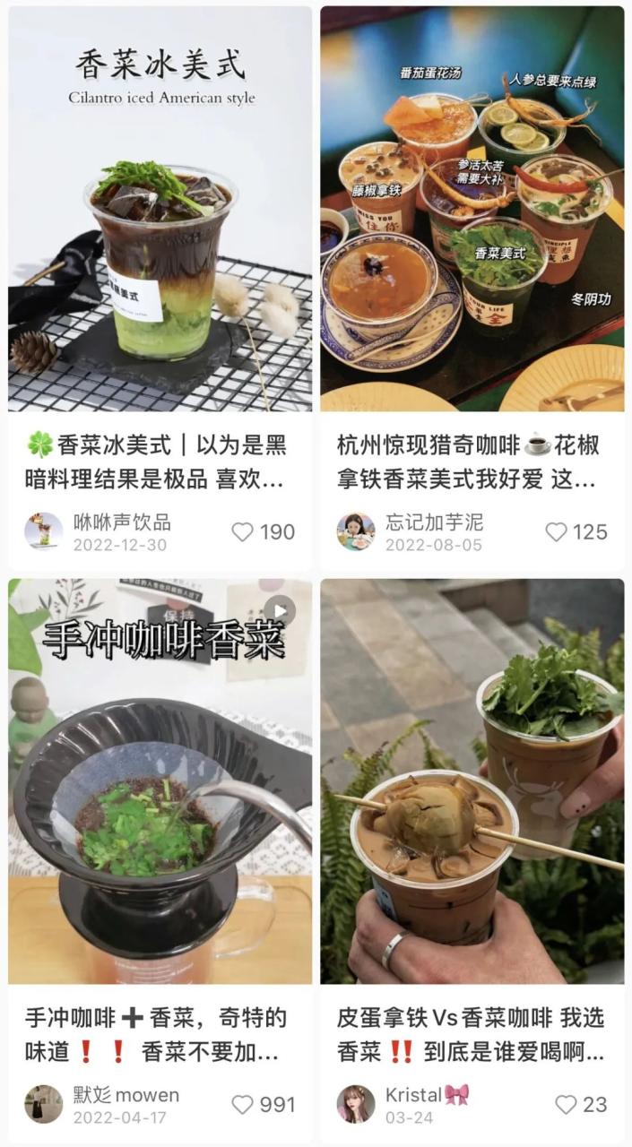 同时,根据小红书网友晒出的产品看,章鱼拿铁、辣椒咖啡、折耳根美式、香菜咖啡、豆腐脑咖啡等奇奇怪怪的咖啡组合比比皆是,等各种类型的咖啡,吸引着年轻人纷纷购买尝鲜。
