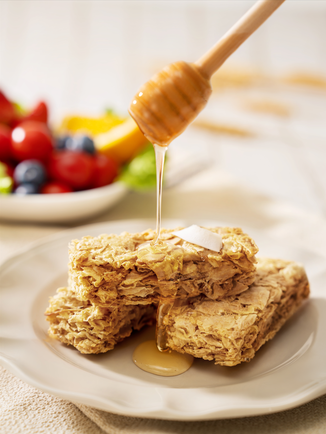 更重要的是,欧扎克全麦脆也很注重口感,会通过技术创新提升产品体验,借助0.3mm超薄压制工艺,确保麦片厚度≤0.3mm,对比传统的常规冲调麦片0.5mm-0.8mm,达到酥脆口感。