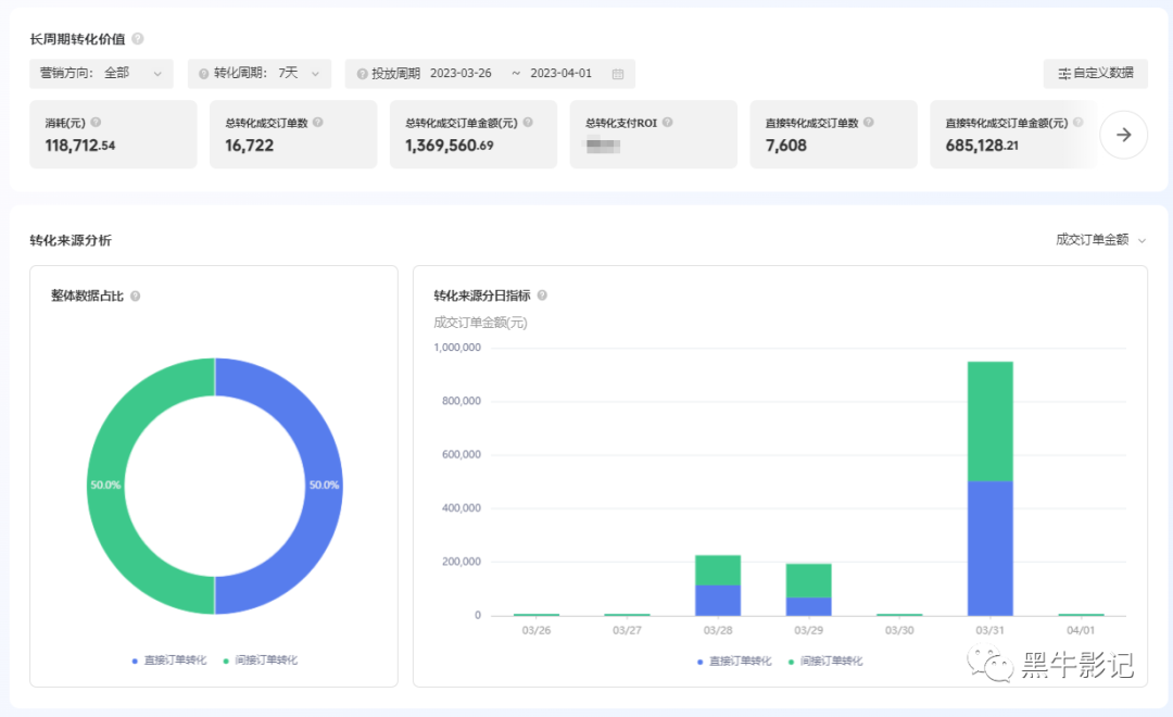 这就类似于很多品牌投UD跳转天猫的逻辑,即便 ROI产出亏钱,但是这波投放可以拉升淘宝单个链接的搜索权重,能带来很好的长尾效应。