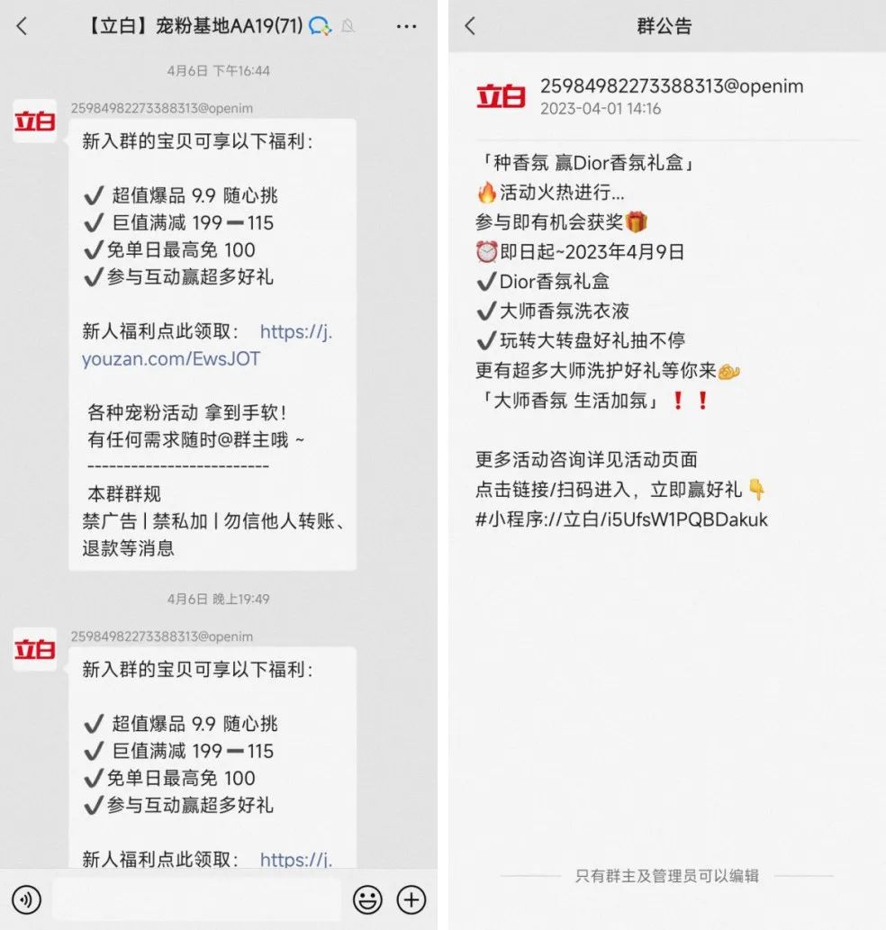 最后说两个立白在私域运营上待优化的点: