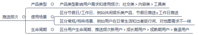 1. 产品类型。对于百度地图等工具类APP,用户使用频次有限,一般每天推送不宜超过1条;对于新闻、视频等内容类产品,除用户订阅更新外,一般每天推送应控制在3条以内;对于双微、QQ、以及各大垂直社区等社交类APP可以更频繁一些,但依然建议控制在每天5条以内。