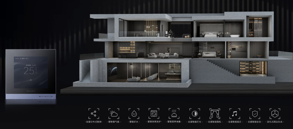 前不久我和COLMO品牌总监有过一次沟通,谈及顾客在别墅中使用全屋智能遇到的一些问题,比如:很多智能家电“进入”的时间过晚,对于已经装修好的房屋来说改动起来过于麻烦。而多品牌“组装”式智能,又会导致装修对接繁琐、智能场景不⻬寻找方案麻烦、厂商间智能方案冲突等问题。