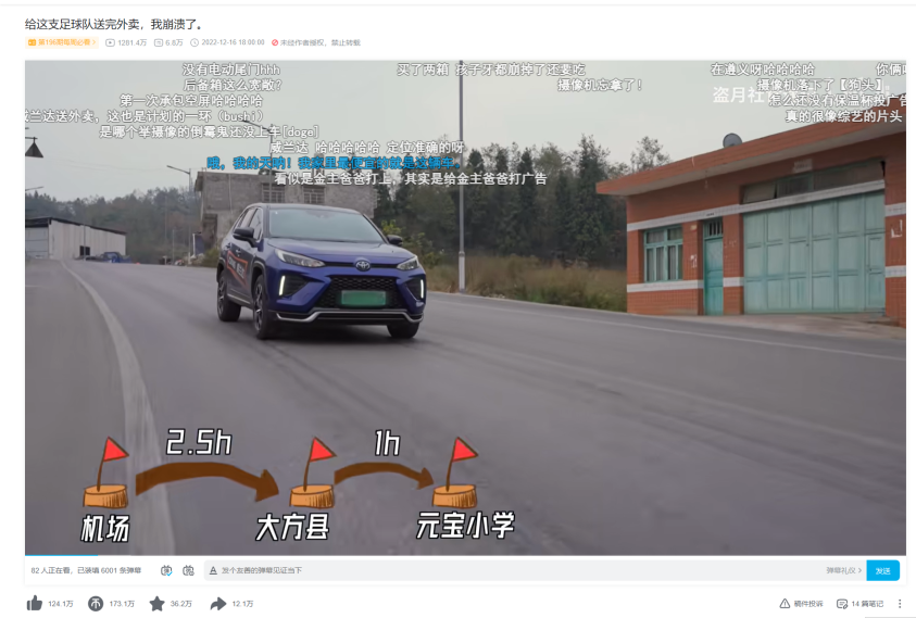 有意义的内容打动了屏幕前的用户们,让他们在弹幕和评论中感谢起金主爸爸对公益事业的赞助和支持,而且在山路、夜路送外卖的场景中,自然植入了威兰达的四驱动力系统、自动远光灯系统、超大后备空间等产品卖点。