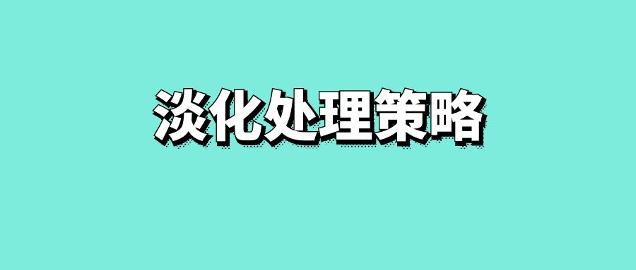 淡化处理策略在于尽量减少心理反作用(逆反/仿效/不满)。在大众传播中,淡化处理包括淡化注意、淡化事实、淡化评论。