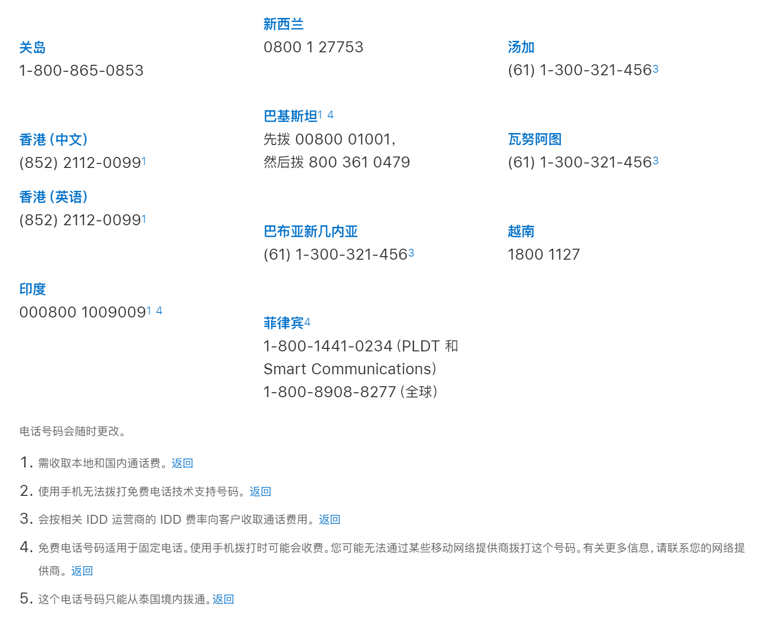 全球电话支持: