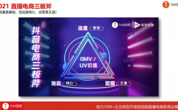 各位朋友们,去年三四月份,其实我们也和大家沟通过抖音短视频、抖音直播的一些玩法。今天给大家分享一下直播电商的玩法:第一是要去做直播,从短视频到直播,直播电商其实就是企业自己去带货,然后在变现的路上快速去实践。 TiMi有10年BAT的经验,我们也是一家千万粉丝的MCN机构,策划了单条视频成交1500万,策划单场直播成交3000万,也是多家直播品牌公司的电商顾问。 那么,企业直播电商之路如何快速从0…- 728