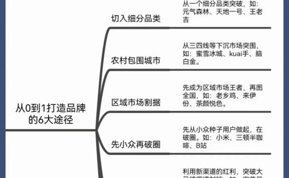 你知道吗?从0到1打造品牌,大都离不开这五种套路。 对于中小企业来说,启动资金有限,资源不足,往往只能低成本启动,而不能盲目地模仿土豪企业的狂砸钱的玩法,不然越越越容易over。 一鑫结合多年的品牌操盘经验,总结了以下几种从0到1打造品牌的途径。 第一种:切入细分品类。 比如元气森林,从无糖苏打水这个潜力大、但又竞争没那么激烈的赛道切入,成为这个品类的代表品牌。 第二种:农村包围城市。 比如蜜雪冰…- 210