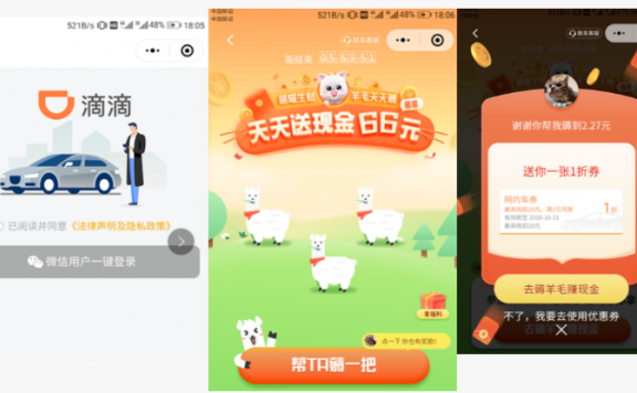 今天分享的案例来自taric童鞋,所拆解的【滴滴出行】优惠券裂变活动~ 1 优质案例拆解 案例名称:【滴滴出行】优惠券裂变活动 案例行业:生活出行行业 拆解作者:taric 案例背景: 从2010年起中国网约车发展至今已过了10年,目前市场上已获牌的平台多达191个,但是滴滴依旧处于龙头位置。2020年5月,滴滴平台的月活跃人数高达5439万人,比第二名高出5193万人。 但是除了滴滴之外,网约车…- 4.7k