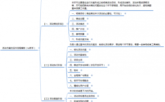 前言: 本模板是结合笔者从多年来的活动运营经验,得出的一套比较通用的活动模板,帮助运营小伙伴们理清活动策划的思路,快速完成一个活动策划方案。 本模板有一定适用范围,有自身经验的局限性,表达亦不能完全,请结合实际情况参考。 按照模板去写并不是目的,快速把活动相关思路理清楚才是重点。 活动的方案策划流程按照不同时间阶段,主要分为以下几个部分: 【活动策划阶段】明确目标、确定主题、活动描述、推广计划、费…- 1.2k