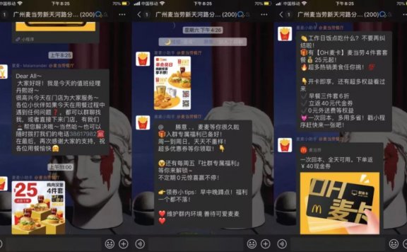 今天分享的案例来自楊Visa_童鞋,所拆解的【麦当劳】福利私享社群~ 1 优质案例拆解 案例名称:【麦当劳】福利私享社群 案例行业:生活社交 拆解作者:楊Visa_ 案例目标:促活转化 案例标签:社群营销 案例路径: 1)入群方式 手机下单后取餐码页面直接扫码加入企业微信群;小程序内找回历史订单,订单详情页面扫码进群。 2)社群流程 目前看来社群没有严格固定的消息推送时间点,群价值主要是每日产品推…- 5k