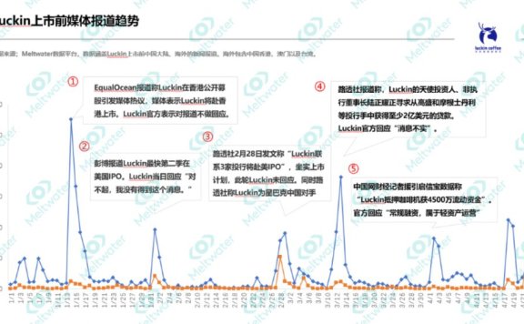 自2019年1月开始,媒体对于瑞幸 Coffee上市的猜测报道就不曾间断。 从最开始的上市拷问,到后期财务问题质疑,瑞幸的顺利上市离不开品牌背后强大且专业的公关团队。本文将由Meltwater上海的资深舆情分析师Sail Zhou为大家详细拆分瑞幸上市相关报道,细数五次瑞幸公关与媒体的交锋,为大家讲解瑞幸公关团队是如何处理企业上市相关的舆情,引导网络舆论。 基于网络公开新闻内容,从Meltwate…
