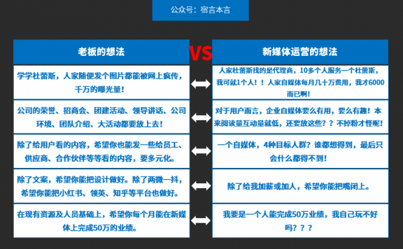 绝大多数的企业自媒体,更像是免费的广告发布平台。 也许是受到了去年疫情的影响,企业都面临着巨大的盈利压力。宿言身边一些做新媒体运营的小伙伴最近总在抱怨现在的工作不好干,老板像疯了一样给新媒体运营下KPI,如果仅仅是粉丝量、阅读量以及互动量就算了,竟然还给新媒体运营下达了每个月几十万的销售任务,想通过手里的"两微一抖"让公司销售额突飞猛进... 其实仔细琢磨琢磨,老板想通过自媒体…- 566