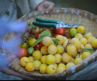 图示:通过近景镜头展现水果的新鲜雨滴和颗粒饱满。